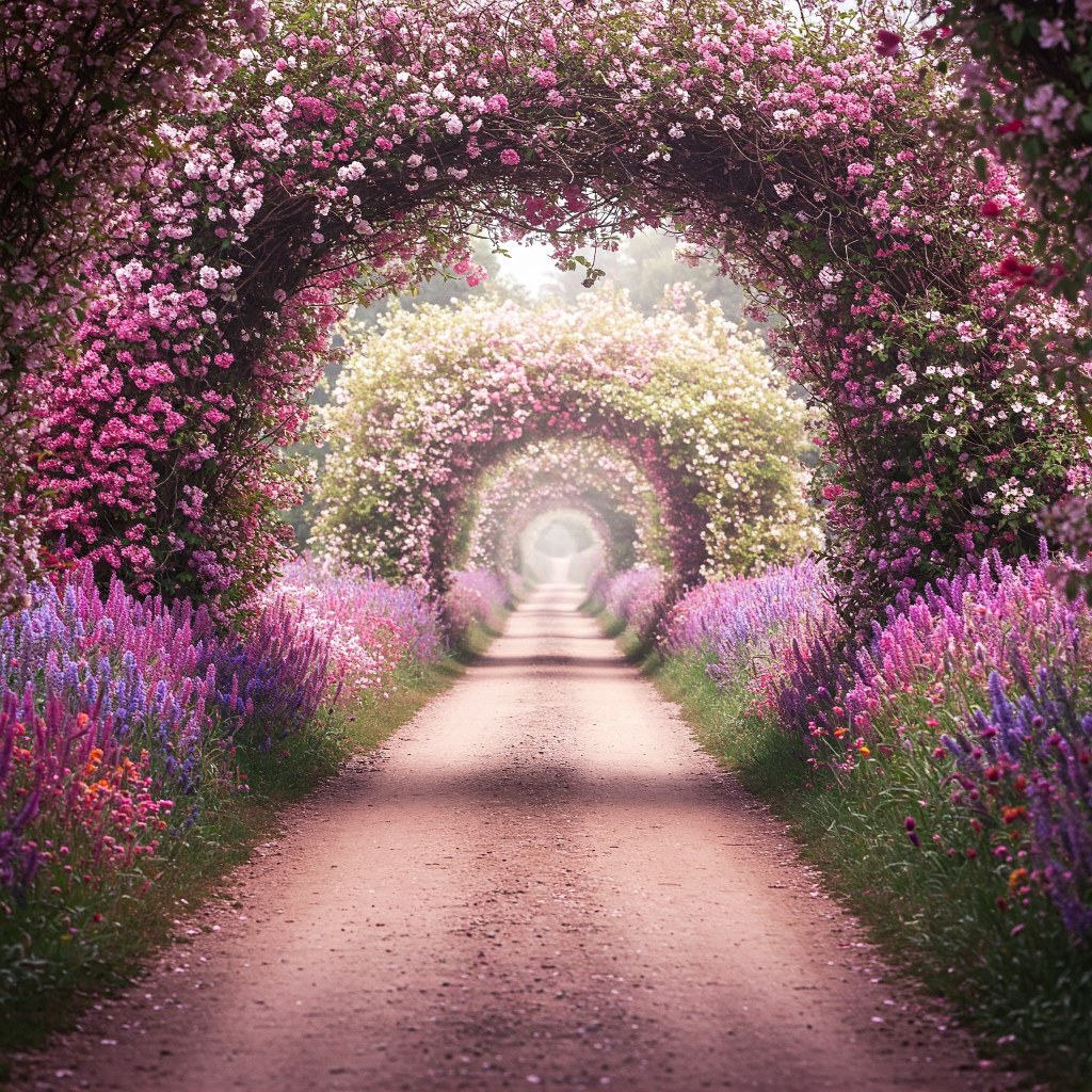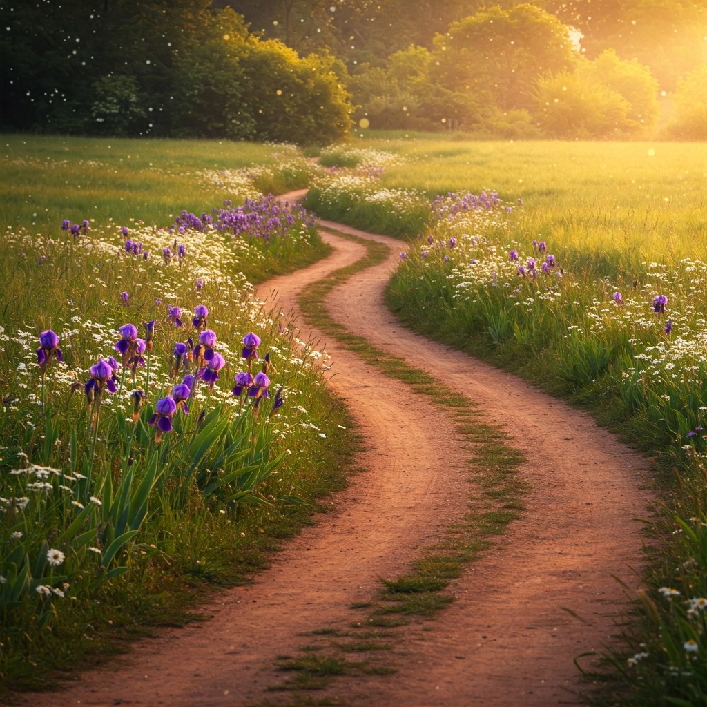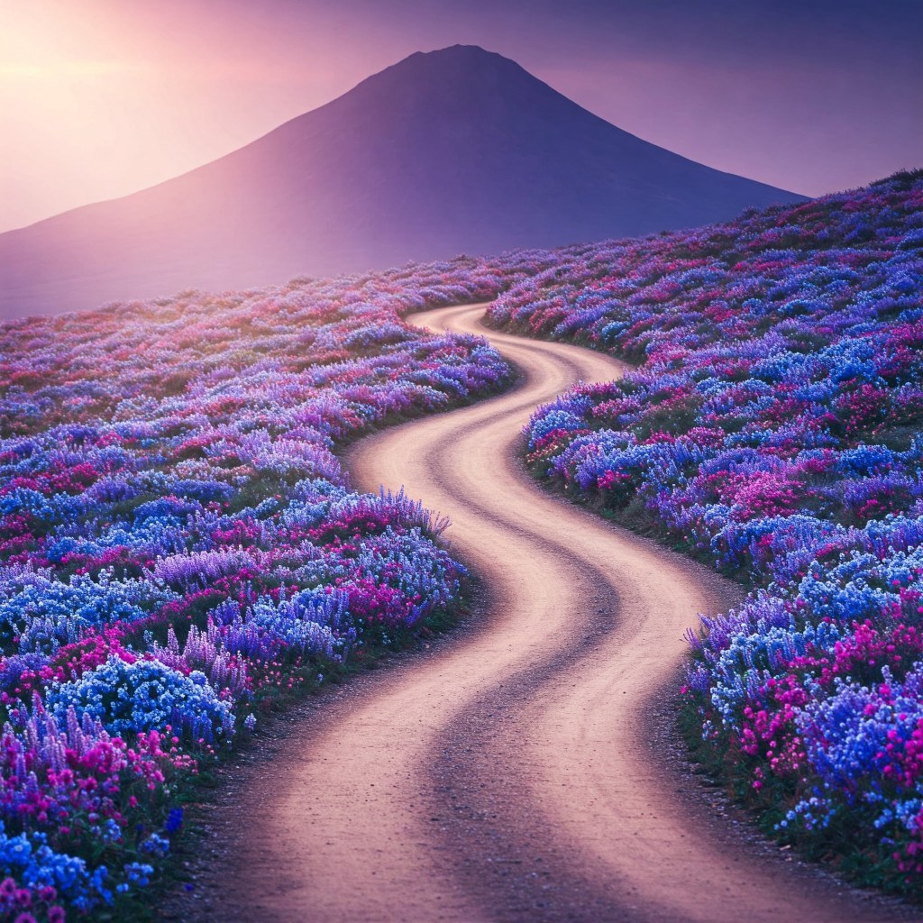the flowers blooming on both sides of the trail calm his heart.